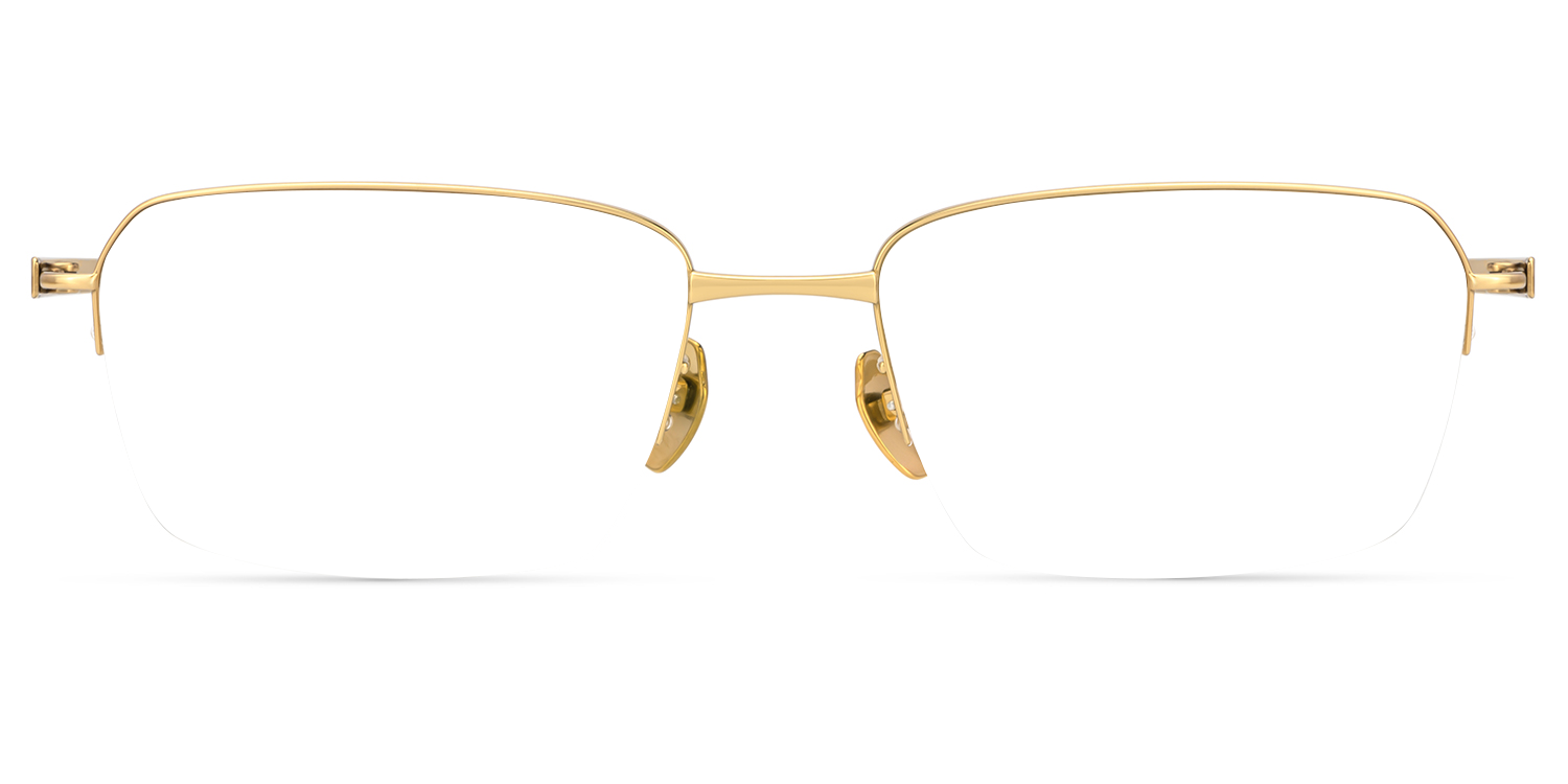 These rectangle glasses feature a modern and sleek design. The frame is crafted with titanium, offering both durability and style. The golden frame with brown temples gives a professional and sophisticated look, enhancing the wearer's facial features. The temples are skin-friendly and comfortable to wear for long periods. The color of the frame is classic gold, which is versatile and can match various outfits and occasions. Whether for fashion or practical purposes, these men's rectangle frame glasses are a great choice for those seeking a trendy and functional eyewear option.