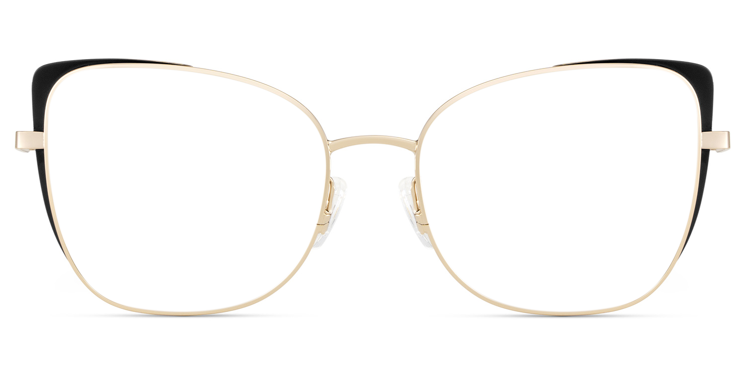 Tessa is a pair of cat eye full rim eyeglasses featuring a black gold finish in metal, providing durability and lightweight properties. The electroplating frame creates sophisticated metallic sheen, making it ideal for everyday use, whether at work or during leisure, for style - conscious individuals.