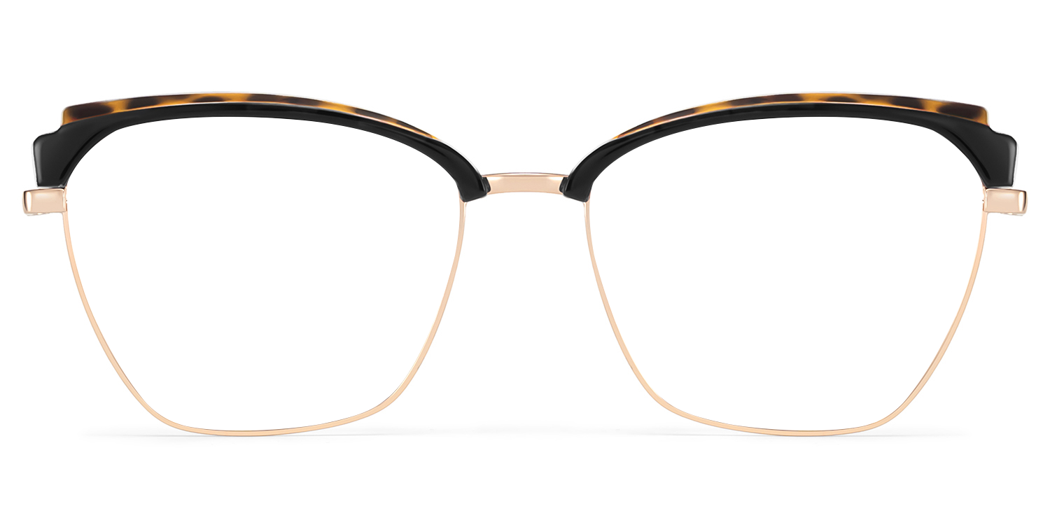 Phoebe is a pair of browline full rim eyeglasses featuring a tortoise finish in mixed material, offering hybrid durability and avant-garde styling. The black tortoise combination on the top - bar provides a modern and sophisticated look, making it perfect for fashion - forward individuals for woman.