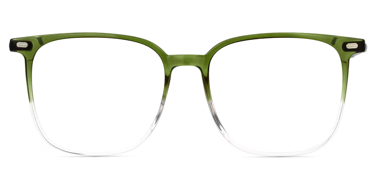 Mullen Square Thin Green-Clear Gradient Frame Glasses1