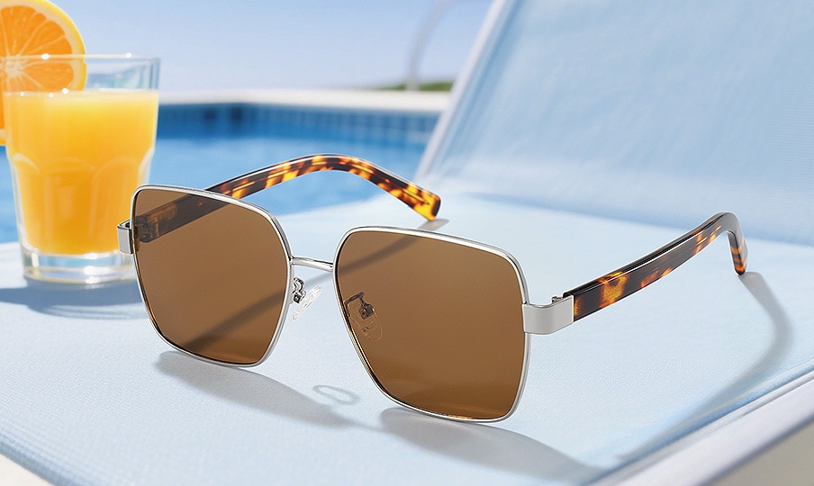 Sahara is a brown square sunglasses frame featuring a brown finish in metal material, providing lightweight and durability. With UV-blocking lenses and anti-scratch coating, these sunglasses provide excellent sun protection, ideal for outdoor activities like beach outings or city strolls. Best suited for women with oval-shaped faces.